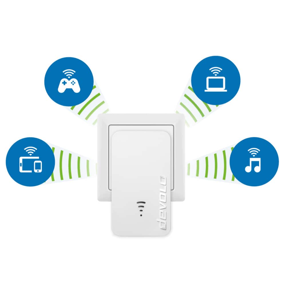 In der Regel werden in WLAN-Netzen mehrere Endgeräte, z. B. Smartphone, Tablet und Laptop, genutzt. Für das Heimnetz ist das eine Herausforderung – es muss die Verteilung der Datenströme vom WLAN-Zugangspunkt (z. B. devolo-Adapter) an die Endgeräte regeln. Mit Multi-User-MIMO ist dies kein Problem.